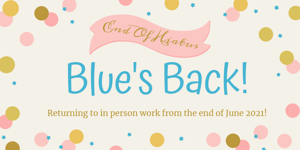 Hello lovelies! I’m very excited to be writing this blog. After getting my first dose of my COVID19 vaccine on the first Friday of the month (4th June 2021), I’ve been thinking about returning to in person work. After taking time to think over everything I’ve decided that I will be returning to in personContinue reading “Blue’s Back! – 11.6.21”